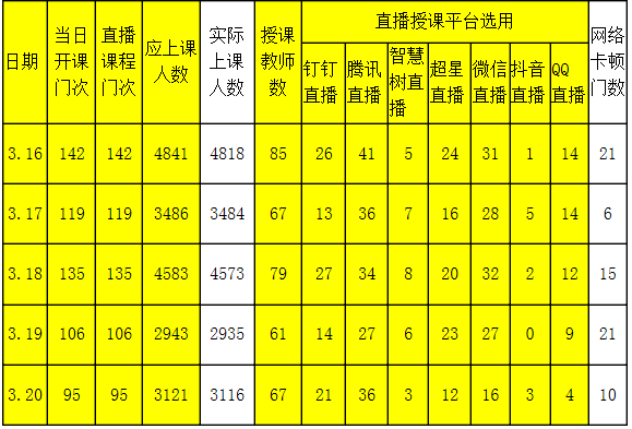 外国语学院在线教学每日核心数据统计表
