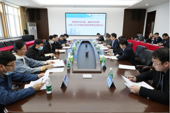 副校长代表学校对科技厅一行来校调研和宣讲表示热烈欢迎,对科技厅多年来给予我校科技工作的大力支持表示衷心的感谢。他表示,重点实验室引进优秀人才是促进永利官网人才队伍建设,提高学校核心竞争力,实现“人才强校”战略,助力“双一流”建设的重要保障,学校将以此为契机,扎实推进人才引进工作,全面提升重点实验室建设和管理水平。人事处处长杨忠学介绍了学校在人才引育方面的主要做法、显著成效和面临的困难。