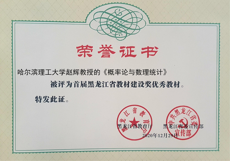 “概率论与数理统计”获评首届黑龙江省教材建设奖优秀教材一等奖