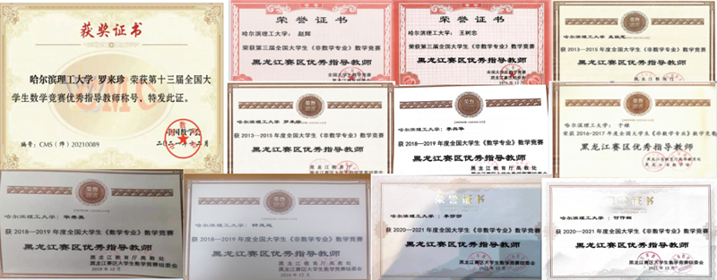 在名师示范引领下,罗来珍荣获首届全国高校大学数学课程教学创新示范交流活动教授组全国一等奖,李莎莎荣获首届全国高校大学数学课程教学创新示范交流活动讲师组全国一等奖。团队成员曾获得黑龙江省高校教师教学创新大赛一等奖1项,黑龙江省首届大学数学课程教学创新示范交流活动一等奖2项、三等奖1项、教学设计创新奖1项。