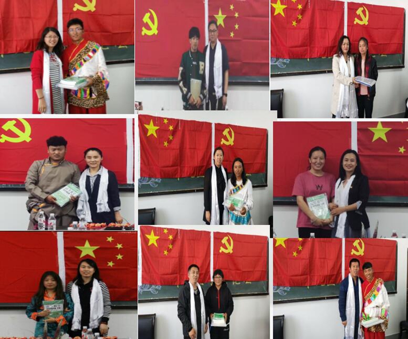 团队教师为结对帮扶的少数民族学生发放学习用品
