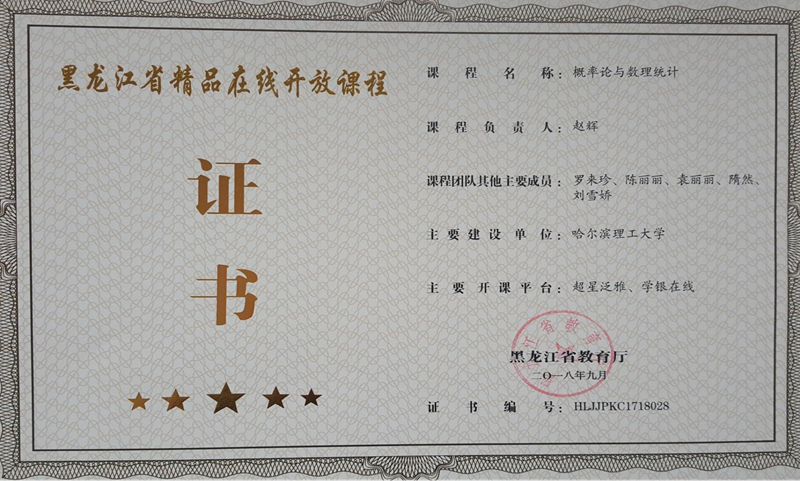 黑龙江省精品在线开放课程“概率论与数理统计”