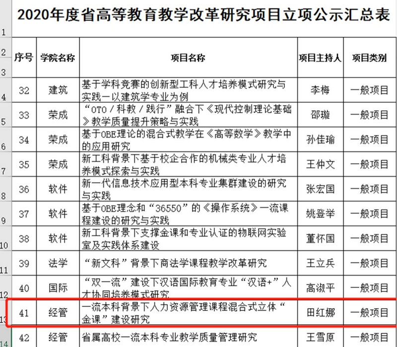 省教改项目立项公示