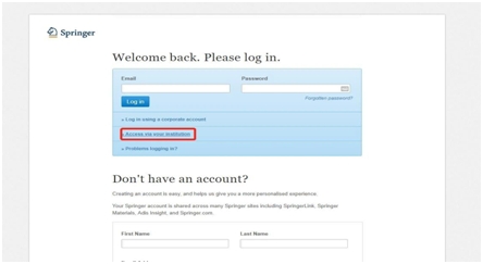 2.在登录页面中,选择“Access via your institution”。