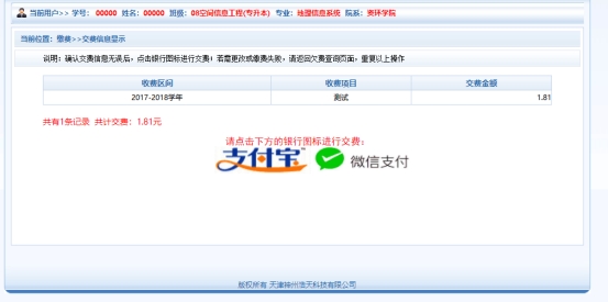 如图,在确认缴费信息无误后,选择支付宝或微信进行缴费。