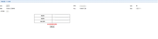 系统登陆后,会显示个人信息页面,如下图所示。包括学号、姓名、院系、班级等信息。请在确认个人信息中的学号、姓名无误后修改初始密码,然后进行缴费。在缴费过程中请确保菜单栏下方的当前用户信息无误。