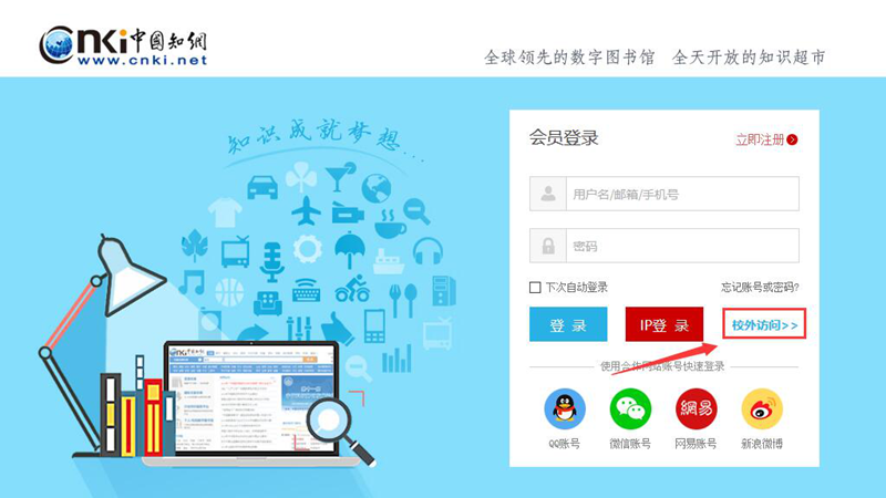 2.在“会员登录”页面选择“校外访问