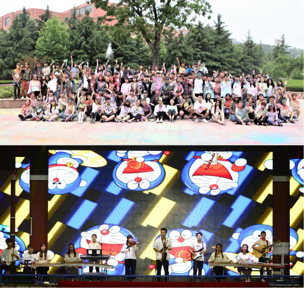 (图为彩色酷跑活动和迎新晚会)