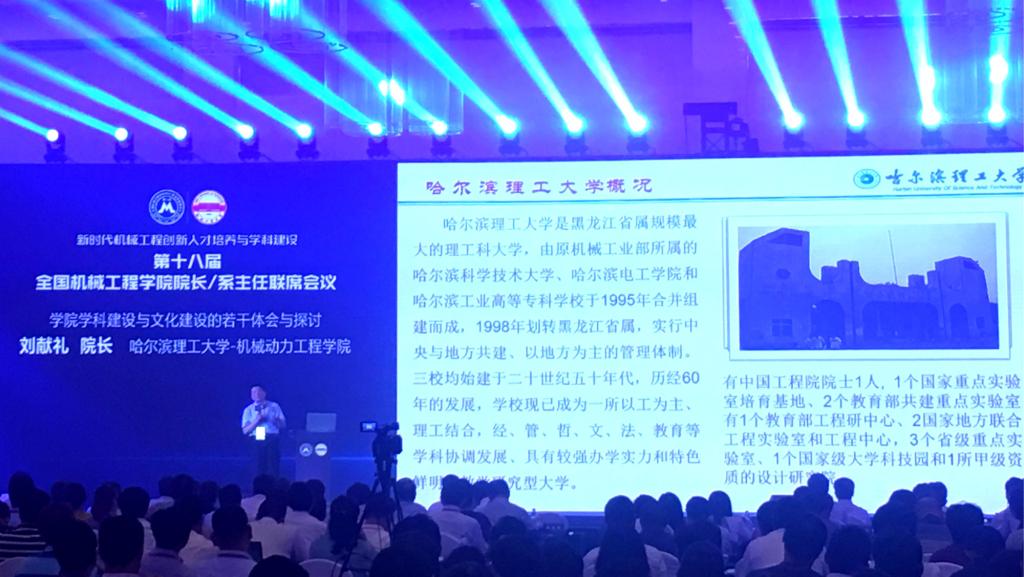 8月16日~18日,第十八届全国机械工程学院院长/系主任联席会议在安徽省合肥市举行,会议由全国机械工程学院院长/系主任联席会议委员会主办,合肥工业大学承办,安徽理工大学和安徽工业大学协办。本届会议以“新时代机械工程创新人才培养与学科建设”为主题,来自全国240余所高校的学校领导、机械工程学院院长、系主任及相关企业代表700多人出席了本届会议。永利官网机械动力工程学院院长刘献礼教授受大会邀请作报告。