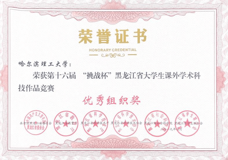 “挑战杯”系列赛事被誉为中国大学生科技创新创业的“奥林匹克”盛会。日前,由共青团黑龙江省委、黑龙江省教育厅、黑龙江省科技厅、黑龙江省科协、黑龙江省社科院、黑龙江省学联主办,哈尔滨商业大学承办,中国工商银行黑龙江省分行、龙广高校台参与协办的第十六届工银融e联“挑战杯”黑龙江省大学生课外学术科技作品竞赛落下帷幕。永利官网获得一等奖5个,二等奖9个,三等奖9个,并有3项作品入围全国决赛,成绩居全省前列。永利官网获优秀组织奖,戴野、于雪莲、张浩男、张文龙、戴亚杰、岳彩旭、张大为、刘立柱8位老师获省赛优秀指导教师。