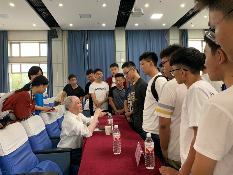 雷院士仔细倾听2019级新生代表们提出的问题,并从专业学习、时间分配、职业规划和科学研究等角度深入浅出地为同学们作出详尽的解答。讲座在第30次掌声中缓缓结束,但同学们不愿离场,都紧紧围绕在老先生周围希望聆听更多的教诲。