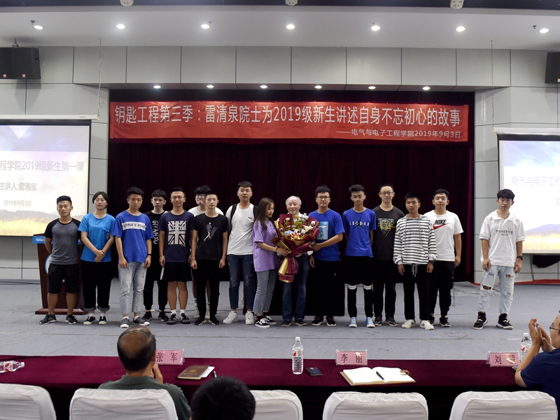 “所谓大学者,非谓有大楼之谓也,有大师之谓也”,大学作为国家栋梁培养之根本,依靠大师为门下弟子传授知识,树立榜样,指明道路,是谓“传道、授业、解惑”。值此新中国成立70周年,全国开展“不忘初心、牢记使命”主题教育,第35个教师节来临之际,中国工程院院士雷清泉教授再一次登上讲台,为2019级新生讲述自身不忘初心的故事。执教57年,通过三尺讲台,一隅科研,培育出众多英才,他希望自己的经历影响更多的电气学子。近三年的新生入学之际,雷院士都会特意抽出宝贵时间和同学们畅谈自己的专业与人生、立志与拼搏、感恩与报效祖国。