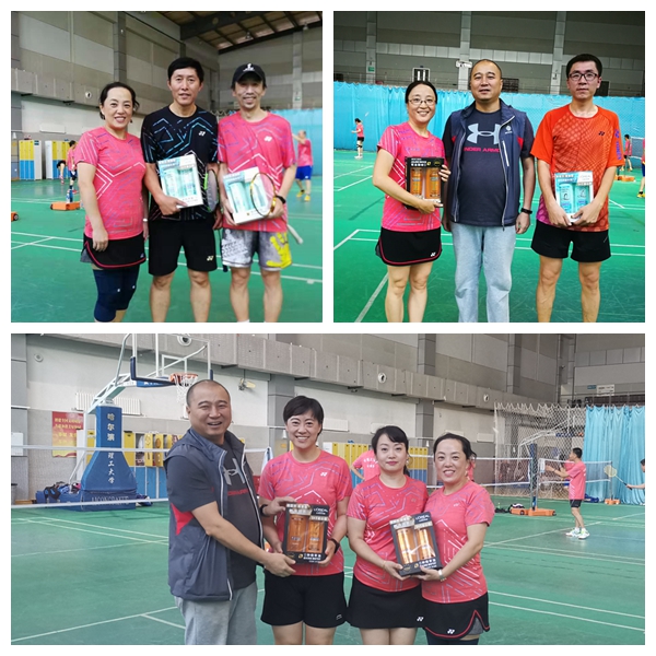 赛前工会副主席李少先亲临现场为大家助阵并讲话,充分肯定了理工羽协成立十多年来的工作成绩和在教职工文体娱乐活动中所发挥的重要作用,同时宣布了羽协新一届组织机构成员名单,会长:金恩海;副会长:林克正、白文涛、付作娴;秘书长:闫凤云,秘书:林喜荣。为了此次赛事,羽协新班子成员作了大量的准备工作,他们组织队员集体团购了印有“哈理工羽协”并附本人姓名的球服,为获奖及参赛队员购置奖品,研究赛制,组织抽签分组,全程拍照。功夫不负有心人,本次友谊赛在一片欢笑和赞美声中圆满落幕。