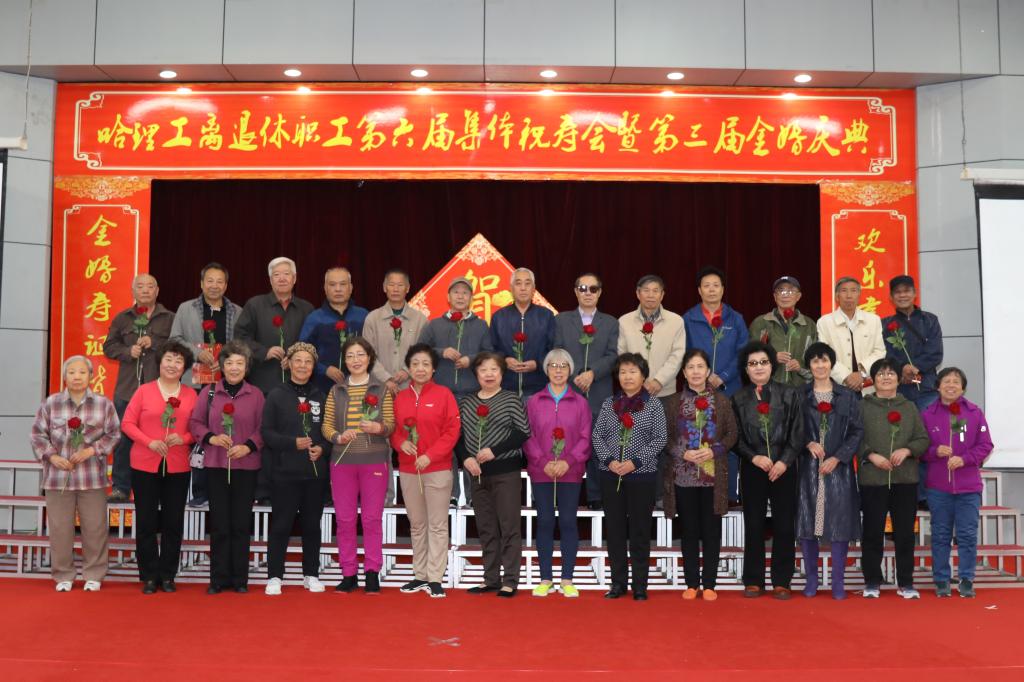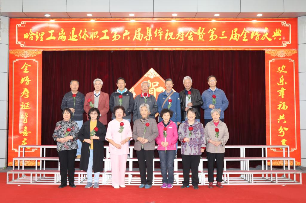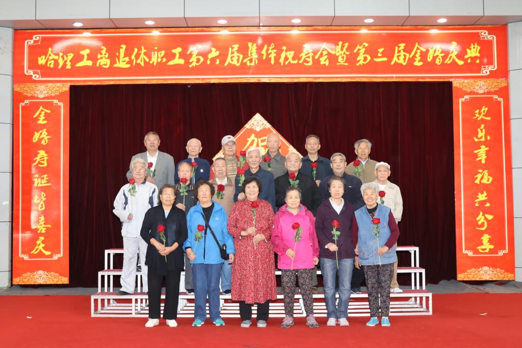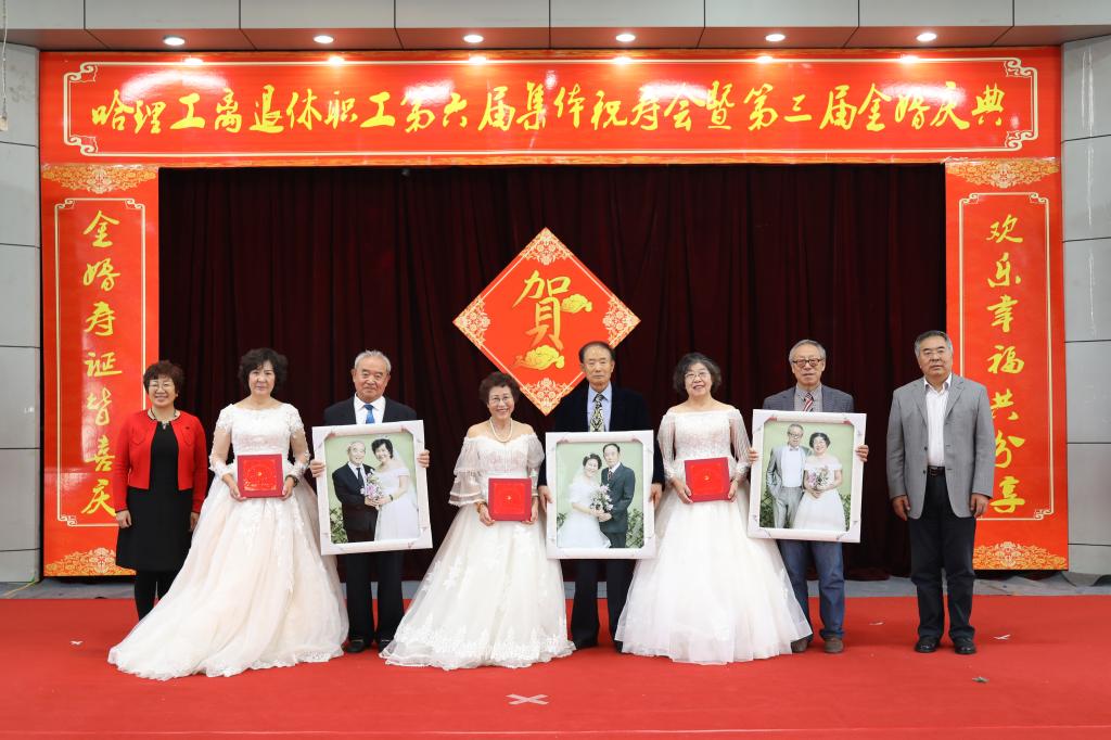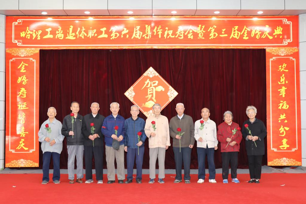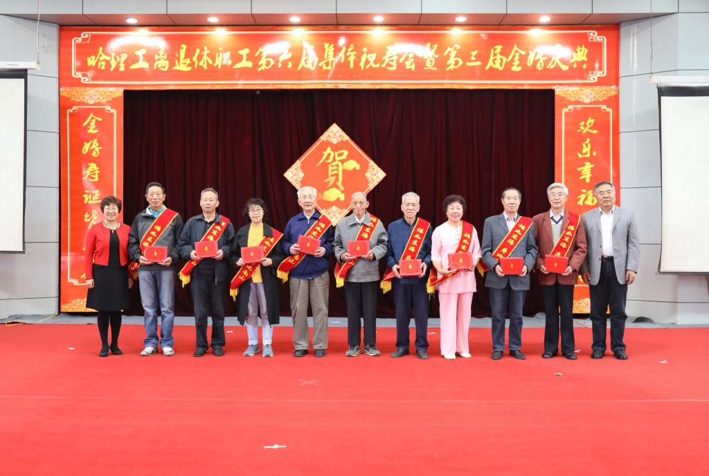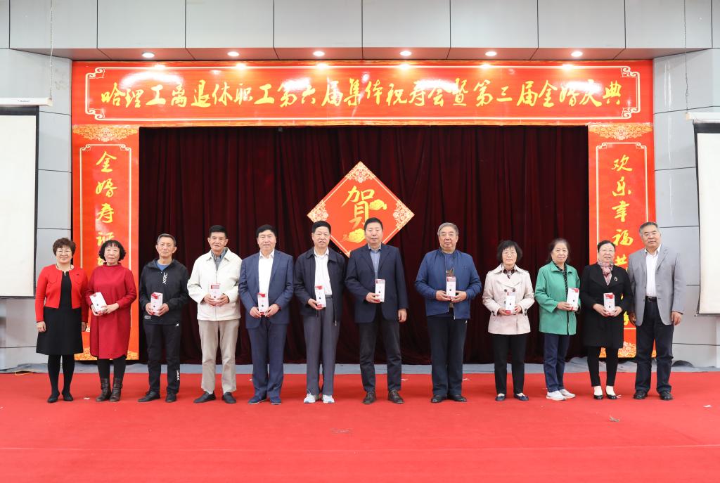 校党委书记张洪涛、副书记陆岩为寿星代表颁发了寿盘、寿带,为金婚夫妇代表颁发了婚纱相册、纪念盘,为共和国同龄人代表颁发了纪念品。寿星代表严成斌、金婚夫妇代表郭文彬、共和国同龄人代表陈凤林代表全体寿星、金婚夫妇、共和国发言,他们感谢学校党委对离退休工作的重视和支持,感谢学校领导对老同志们的关心,表示要继续发挥余热,关心和支持学校各项事业发展,在充分感受哈理工大家庭温暖的同时,也表达了对国家和学校发展的热切期望和美好祝福。