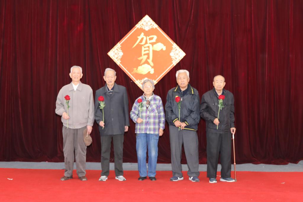 校党委书记张洪涛、副书记陆岩为寿星代表颁发寿盘、寿带