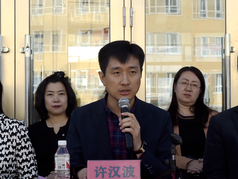 许汉波副部长在捐赠仪式上致辞。他首先对哈理工各级领导和老师的到来表示欢迎,对女博士联谊会的善举表示感谢。他指出,哈理工扶贫工作队严格按照中央、省委有关扶贫工作的相关要求,深入走访,积极调研,紧密结合新立村的实际,依托高校的教育资源优势,多次组织哈理工女博士联谊会、哈理工团委支教团、民盟哈理工委员来村开展扶贫助学活动。活动期间,高校教师捐款捐物,并主动深入到学生中开展丰富多彩的助学助教活动。通过一系列的爱心活动,不仅资助一些贫困孩子完成了学业,而且改变了他们的一生,也有力地推动了巴彦县农村基础教育事业的发展,塑造了时代新风。一系列扶贫助学活动的举办,不仅是对巴彦县贫困学子的拳拳关爱,也是对全县教育和社会各项事业的关心、支持和鼓舞,更是深入贯彻落实“不忘初心、牢记使命”主题教育的具体表现。他希望康庄学校以此次捐助活动为契机,在加强教学管理和提高教育教学质量上下功夫,希望老师们提高专业水平和综合素质,积极争做新时代“四有”好老师,希望同学们加倍珍惜学习机会,树立远大理想,懂得感恩,把各方关爱化作自强不息、刻苦学习的动力,把爱心传递下去,做一个对祖国、社会、人民有用的人。