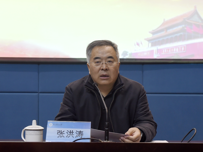 张洪涛书记就学习贯彻执行党的十九届四中全会精神强调指出,学习宣传贯彻党的十九届四中全会精神,是学校当前一项重要的政治任务,各单位要高度重视,周密部署,重点学习好以下四个方面的内容:一是要充分认识坚持和完善中国特色社会主义制度,推进国家治理体系和治理能力现代化的重大意义;二是要深刻领会中国特色社会主义制度和国家治理体系的显著优势,坚定中国特色社会主义制度自信;三是要准确把握坚持和完善中国特色社会主义制度,推进国家治理体系和治理能力现代化的总体要求、总体目标和重点任务;四是要加强党的领导,确保全会确定的各项目标任务全面落实到位。