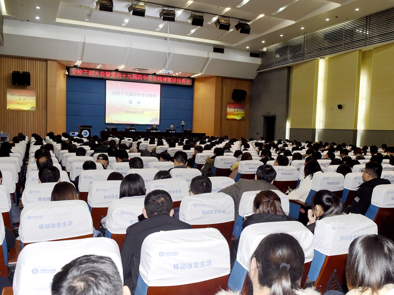学习贯彻党的十九届四中全会精神黑龙江省宣讲骨干、黑龙江省人民政府特聘法律专家、马克思主义学院王晨教授宣讲党的十九届四中全会精神。王晨教授从党的十九届四中全会《决定》的基本框架和行文逻辑入手,从马克思主义的纲领性文献、马克思主义的政治宣言书的高度,对《决定》的总体要求、总体目标和重点任务进行了系统深入的阐释。王晨教授以大量的史料、鲜活的案例、翔实的数据、党的最新理论成果,围绕着坚持和完善党的领导制度体系、坚持和完善中国特色社会主义法治体系、坚持和完善社会主义基本经济制度、坚持和完善统筹城乡的民生保障制度等四个方面阐明了全会的重大意义以及中国特色社会主义制度和国家治理体系的显著优势,同时,对如何加强党的领导,确保全会确定的各项目标任务全面落实到位谈了认识体会,为与会师生深入、系统地领会党的十九届四中全会精神,提供了遵循。