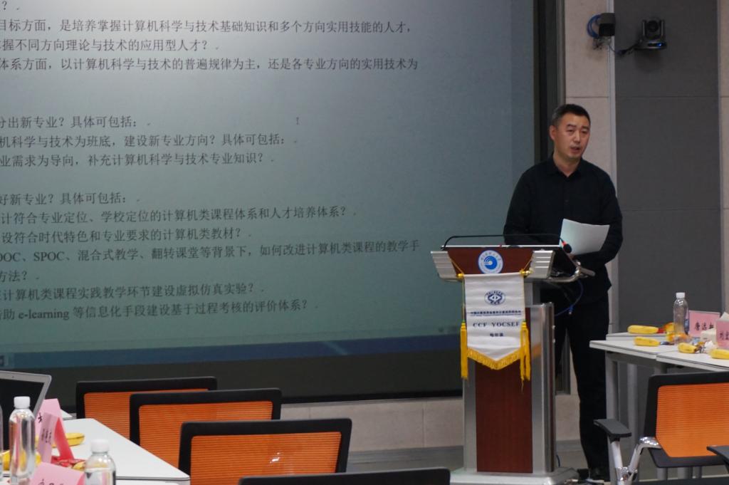 第四位做引导发言的是77779193永利官网计算机科学与技术学院副院长唐远新副教授,题目是“地方高校计算机类应用型本科人才培养的探索与实践”。他分享了在地方高校或省属高校的环境下如何做好本科生教育,特别是在“我是谁、为了谁、依靠谁”等问题的思考,指出不能做旁观者,而是要长期坚持、不断改进,才能取得好的专业建设效果。