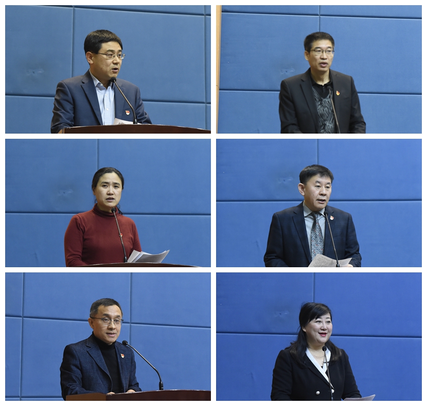 12月31日上午,学校在教学主楼5楼报告厅召开党委全委(扩大)会议暨2019年度基层党委书记述职评议大会。校党委书记张洪涛出席会议并讲话,在校校领导,校党委委员、纪委委员,两代表一委员,基层党委书记,党委职能部门副处级以上干部,部分党支部书记和党员代表参加会议。大会由校党委副书记陆岩主持。