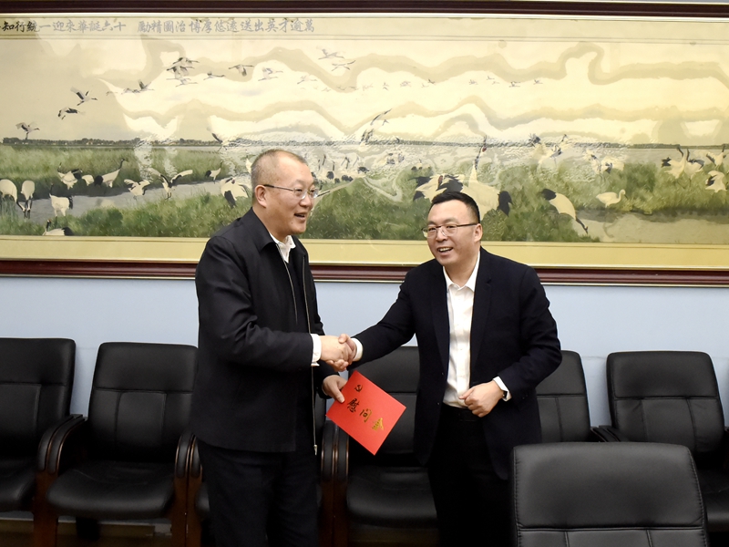 2020年新春佳节来临之际,为感谢永利官网优秀专家人才在国家和地方经济社会发展中做出的突出贡献,营造识才、爱才、敬才、用才的良好社会氛围,1月13日下午,哈尔滨市南岗区区委副书记、区长高洪旗在区政府办公室主任孙波、南岗区工业信息科技局局长宋力、科技局办公室主任肖峰等的陪同下到永利官网调研并慰问。校长赵琳在教学主楼第二会议室会见了高洪旗区长一行并举行座谈。学校办公室主任郗朝晖、科技处处长吴明阳陪同会见。