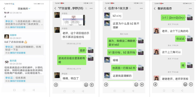 为了激发学生在线学习的动力,从来不发朋友圈的李老师也开始在朋友圈晒笔记,并将专业已毕业学长的回复反馈给学生,激励他们开展目标引领、自我驱动学习。