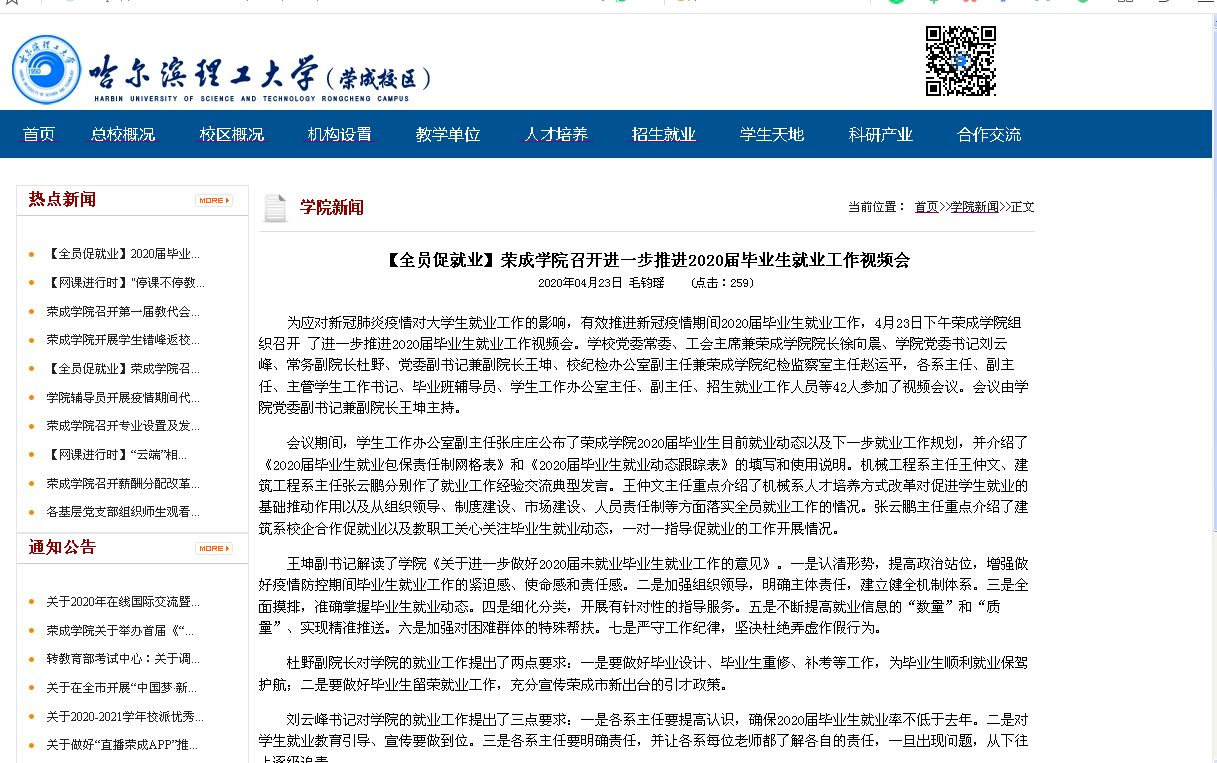 荣成学院制定《关于进一步做好2020届未就业毕业生就业工作的意见》