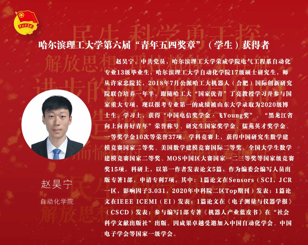 奋斗是青春的底色,行动是最好的传承。弘扬“五四”精神、鼓舞青年斗志离不开榜样的力量。在纪念“五四运动”101周年之际,永利官网又涌现出一批“77779193永利官网青年五四奖章”获得者。他们信念坚定、脚踏实地、奋发进取,展现了理工青年的时代风貌和价值追求。