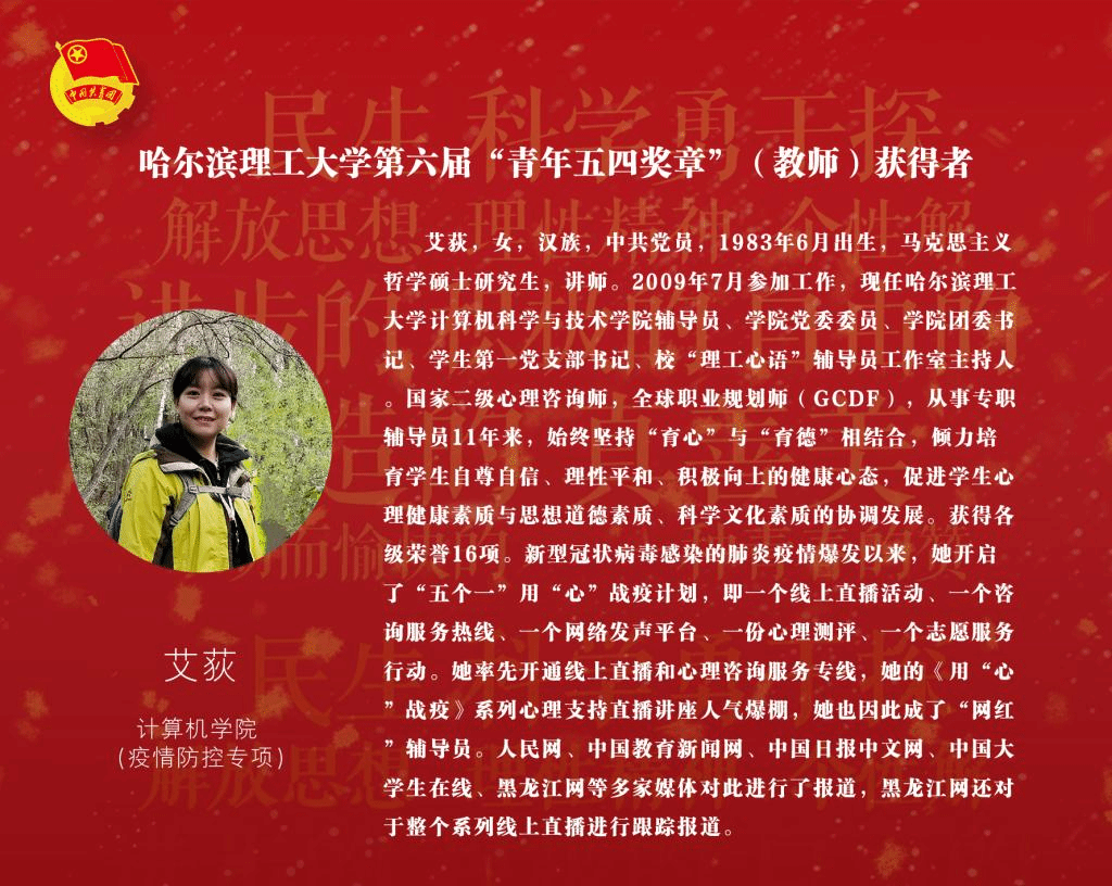 今天,让我们再次走近这些身边的优秀青年,一起向奋斗的青春致敬,以榜样的力量激励和引导永利官网广大青年为强校建设奉献青春智慧和力量。
