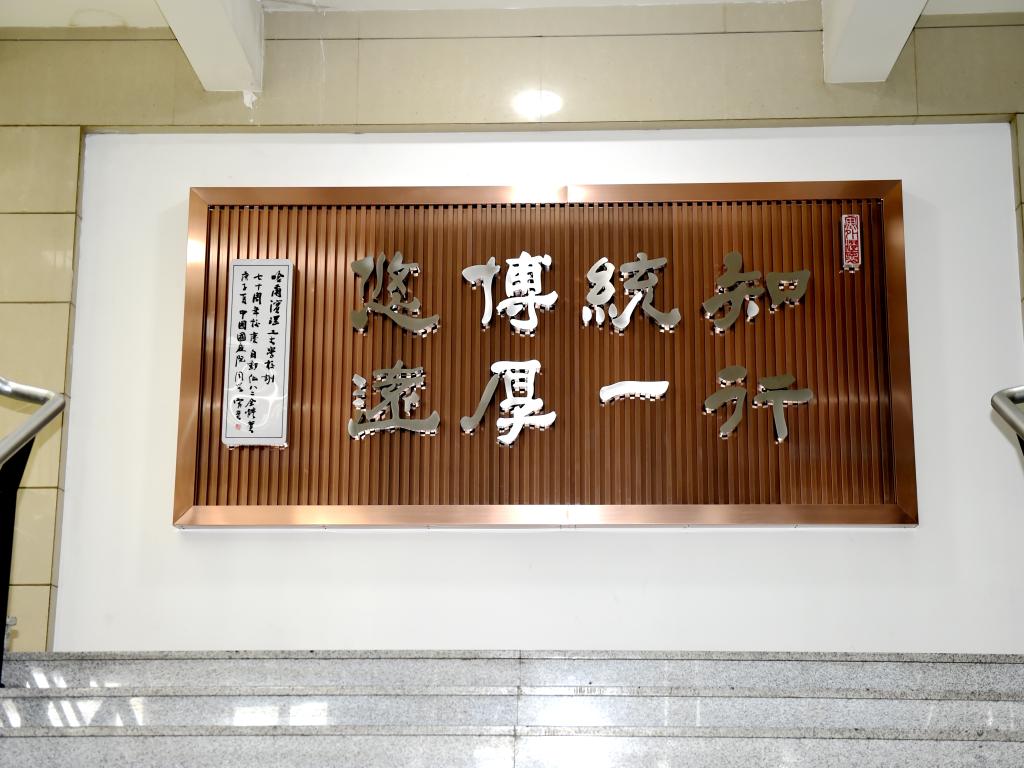 工业电气自动化82班全体同学集体捐资建设的“校训墙”在学校图书馆落成