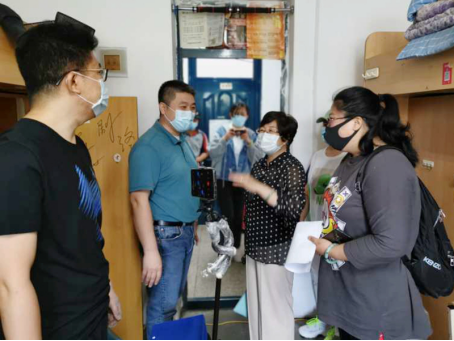 在各学生公寓,陆岩副书记认真察看教职工入公寓的身份核查、体温检测、物资发放、人员疏导等流程,向各公寓楼长详细询问了目前“云邮寄”的安排、进度及问题,并对各工作环节提出指导性意见和建议。陆岩副书记对公寓员工的辛勤付出表示感谢,叮嘱他们要严格各项检查流程,确保监测到位、保护充分,切实把好公寓入口关,保障师生志愿者的防疫安全。同时,在工作中要提高防范意识,注意自身防护,期望大家再接再厉,从严从细落实各项即定措施,圆满完成本次本科毕业生“云邮寄”工作。