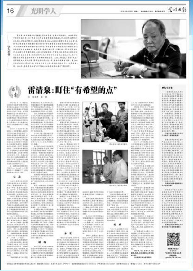 报道雷清泉院事迹的长篇通讯在《光明日报》学人版上整版刊登