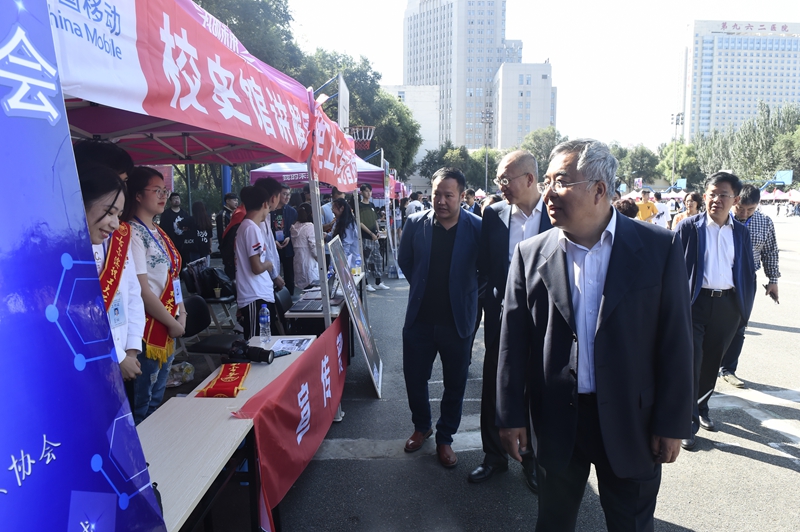 学校党委书记张洪涛、校长赵琳在迎新工作现场看望校史馆讲解员