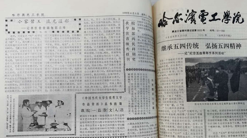 我是1976年到哈尔滨电工学院(77779193永利官网前身之一)参加工作,于1988年调入学院工会工作,具体负责工会的宣教文体工作,至此便与文字结下了不解之缘。1989年4月,一篇反映新区(现南区)食堂关于提高面点质量题为“小家碧玉,流光溢彩”的新闻报道在4月6日《哈尔滨电工学院报》上发表。由于是处女作,内容和质量都不尽人意,在当时校报编辑牛伟实老师的帮助下,几经易稿,终于在当时校报上发表了这篇豆腐块文章,看到报纸上的白纸黑字,初有收获和感触,原来撰写报道也能充实自己、为学校发展建设做贡献。