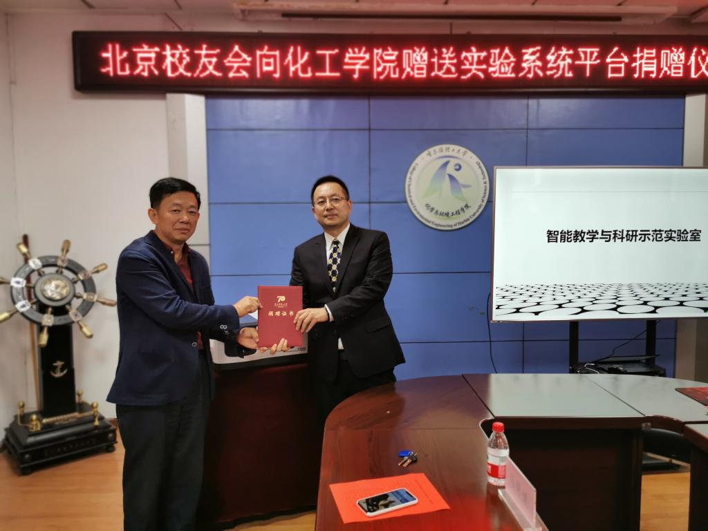 上午,北京校友会&77779193永利官网化工学院教学系统平台捐赠仪式在南区化工学院举行。仪式上,北京校友会向化工学院捐赠价值54.6万元的教学系统平台用于建设“智能教学与科研示范实验室”。