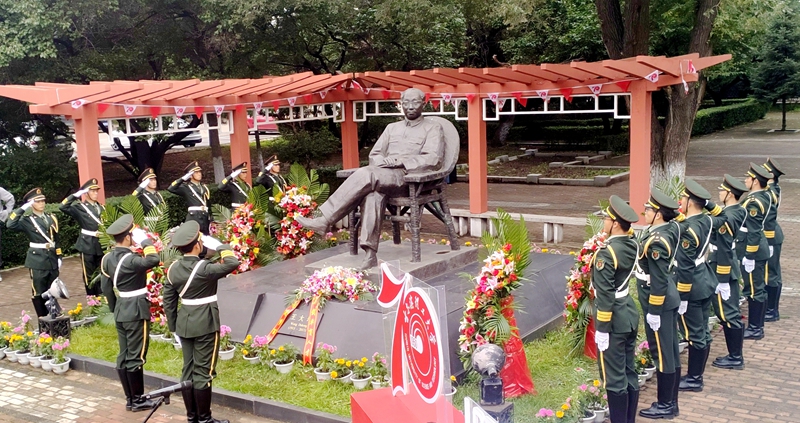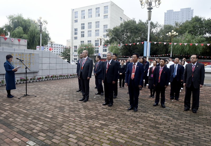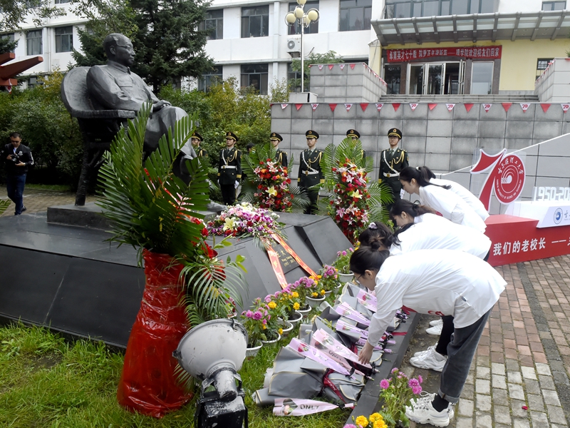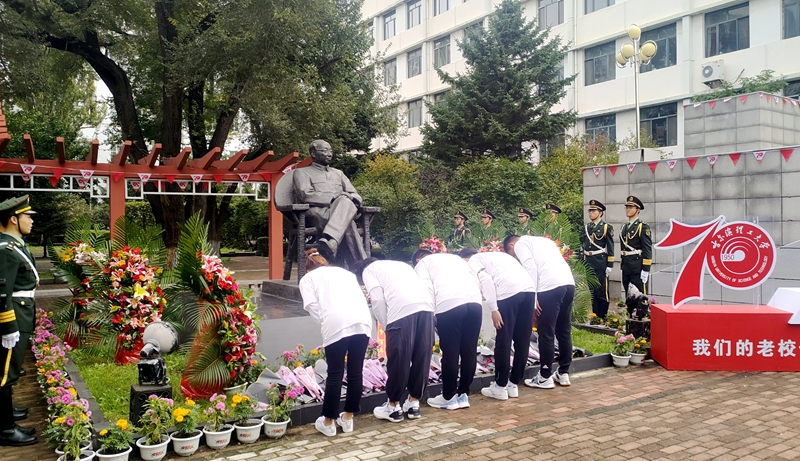 校领导和师生代表敬献鲜花并鞠躬致敬