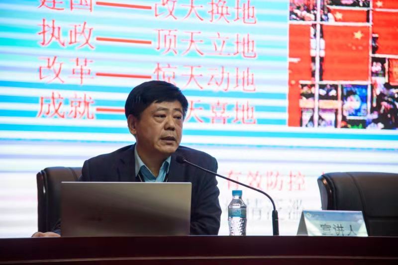 张立双详细解读了由15个部分构成,分为三大板块的《建议》内容;决胜全面建成小康社会取得决定性成就的10个方面;社会主义现代化远景9个目标;“十四五”指导思想和必须遵循的原则;“十四五”时期经济社会发展6个主要目标;“十四五”经济社会发展的重点任务12个方面。张立双最后强调,学习宣传贯彻全会精神,要原原本本地学、认认真真地学,要在吃透精神、领会实质上下功夫,把思想统一到全会精神上来,明确方向、科学规划、推动工作。一要准确理解把握“十三五”时期我国发展取得的重大成就、党的十九届四中全会以来的新进步新成就,深刻认识以习近平同志为核心的党中央一系列治国理政新理念新思想新战略的重大指导作用。二要准确理解到二〇三五年基本实现社会主义现代化远景目标,着力在深刻认识我国社会主要矛盾变化带来的新特征新要求,深刻认识错综复杂的国际环境带来的新矛盾新挑战,增强机遇意识和风险意识,在危机中育先机、于变局中开新局。三要准确理解把握全面建设社会主义现代化国家的形势,深刻认识“十四五”时期我国的发展思路、发展方向、发展理念、发展着力点,坚决贯彻中央大政方针和决策部署,为全面建设社会主义现代化国家开好局、起好步。四要准确理解把握党在经济社会发展中的领导核心作用,增强“四个意识”、坚定“四个自信”、做到“两个维护”,坚持不懈用习近平新时代中国特色社会主义思想武装头脑、指导实践、推动工作,自觉在思想上政治上行动上同以习近平同志为核心的党中央保持高度一致,不断完善上下贯通、执行有力的组织体系,发挥党的强大政治优势、思想优势、组织优势,发挥基层党组织的政治功能、组织功能,把党中央决策部署有效落到实处,推动高等教育高质量发展。