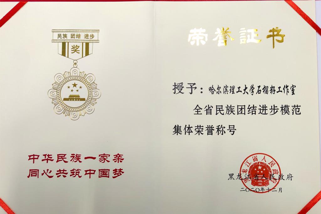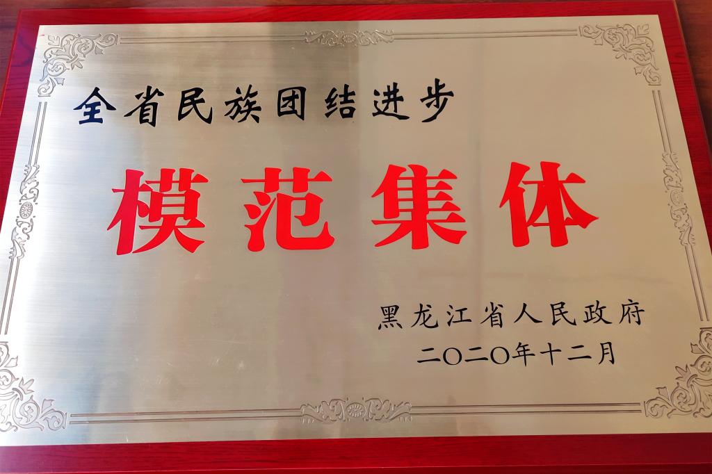 会上,宣读了《黑龙江省人民政府关于表彰全省民族团结进步模范集体和模范个人的决定》,并为受表彰的模范集体、模范个人代表颁奖。永利官网党委书记张洪涛出席会议,永利官网学生工作部石榴籽工作室被授予“全省民族团结进步模范集体”荣誉称号,石榴籽工作室主持人任佳伟作为模范集体代表上台领奖。