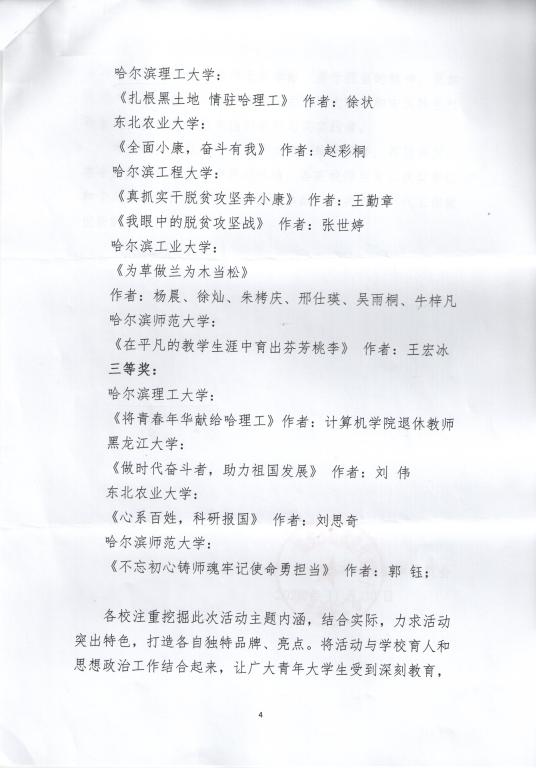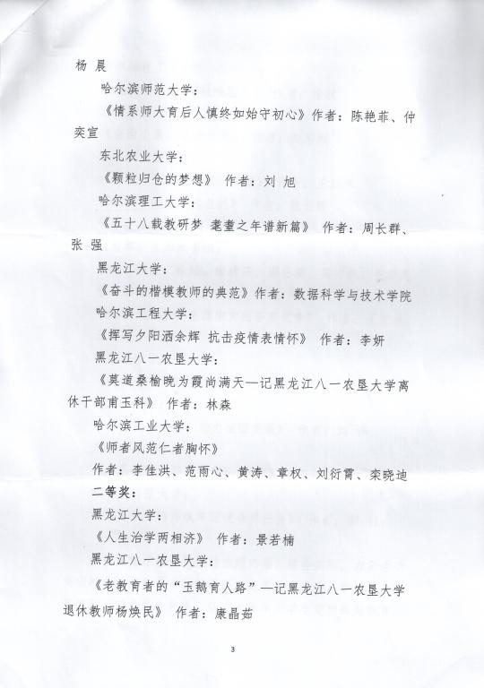 近日省关工委评选结果揭晓,永利官网共有五项作品获奖。机械学院机械工程系党支部选送的《严师有礼振绩有加——记77779193永利官网李振加教授》荣获视频类一等奖,宣传部选送的《使命、贡献、传承》荣获视频类二等奖;周长群、张强撰写的雷清泉院士的《五十八载教研梦耄耋之年谱新篇》荣获征文类一等奖,徐状撰写的计算机学院博士生导师郝忠孝的《扎根黑土地情驻哈理工》荣获征文类二等奖,计算机学院退休教授王广肇撰写的《将青春年华献给哈理工》荣获征文类三等奖。