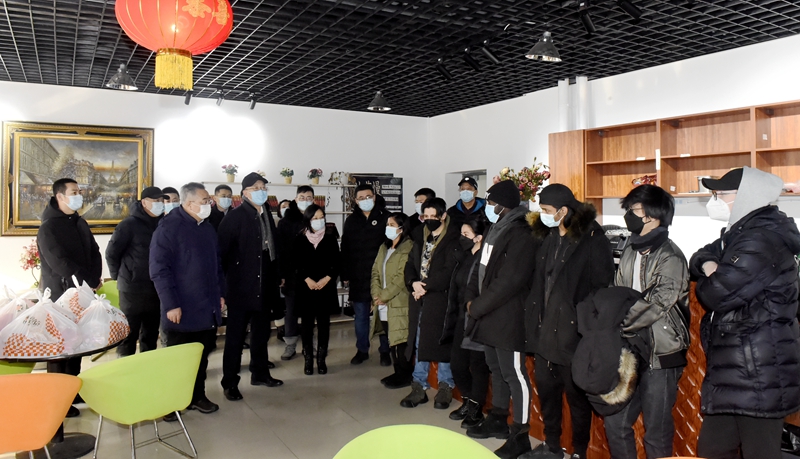 校领导一行先后走访慰问了西区总值班室、西区变电所、蒸汽锅炉房和供暖维修站、实训楼、水泵房、南区图书馆、南区变电所、水源地、留学生公寓、东区的办公楼值班室等一线工作岗位。每到一处,校领导都与坚守在工作岗位的教职工们进行亲切地交谈,详细询问节日期间供暖供电供水、校园安保应急、网络通讯保障等情况,详细了解寒假期间留校的几位留学生学习生活情况,祝福他们在校园里度过一个安定祥和的春节,同时代表学校祝福他们远在异国他乡的家人们身体健康、阖家幸福。校领导一行对各位职工在万家团圆时仍然坚守岗位,舍小家、顾大家,勤奋敬业、无私奉献的精神表示崇高的敬意;对大家放弃休息、加班加点、兢兢业业的工作态度给予了高度的评价;对大家坚守岗位、确保平安和谐、安全稳定的假期校园所付出的努力表示由衷的感谢,并祝福大家新春快乐、阖家幸福。
