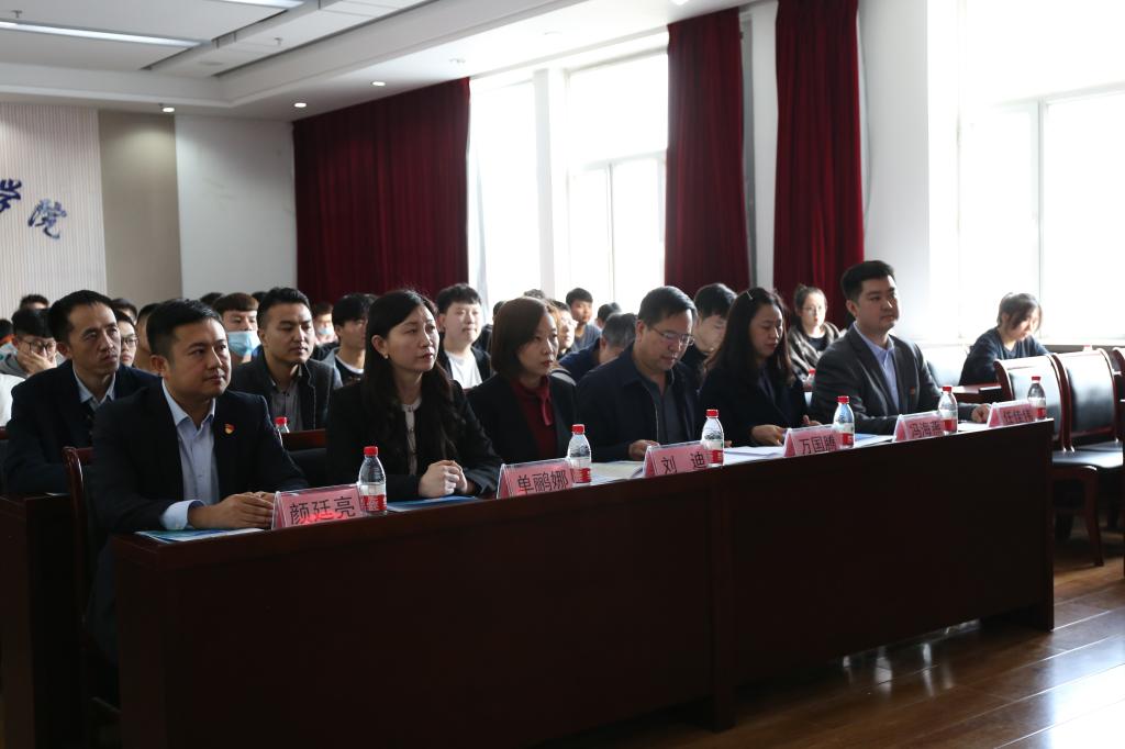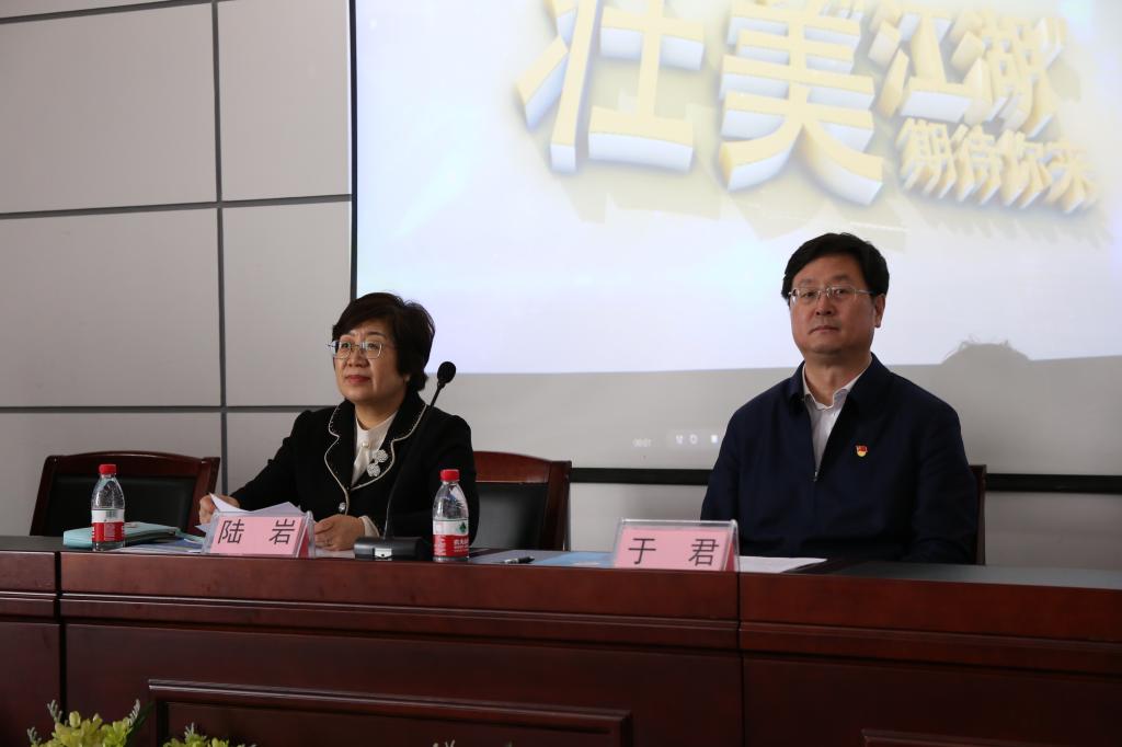 学校党委副书记陆岩(左)主持宣讲会,鸡西市鸡冠区委副书记于君进行宣讲