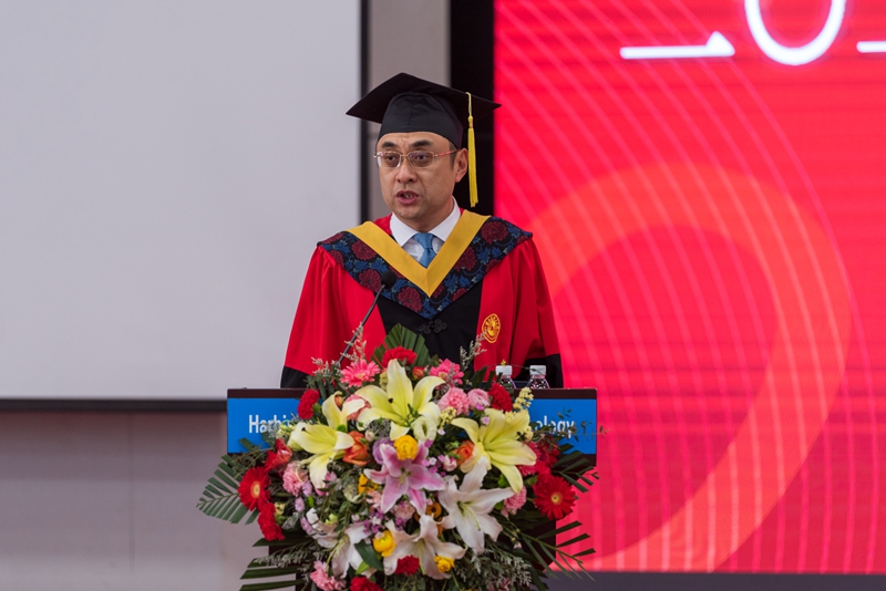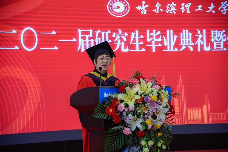 赵琳强调,同学们作为新时代青年,一是要做一个有信仰的人。习近平总书记说过“心中有信仰,脚下有力量。”信仰,是整个民族与国家自信的源泉。我们要在感悟历史中坚定理想信念,树立发展自信。我们要坚定中国特色社会主义道路、理论、制度、文化自信,厚植家国情怀、掌握科学思维、砥砺奋斗报国,把自己的青春奋斗放到历史长河中去审视、去把握,让中华民族伟大复兴在青春的奋斗中初心不改。二是要做一个有格局的人。面对世界经济的复杂形势和全球性问题,政治多极化、经济全球化、文化多样化和社会信息化潮流不可逆转,你们要有人类命运共同体的站位和观念。不能只为一纸文凭而读书,更不能只为一己私利而奋斗,要在融入“大我”中成就“小我”。要秉承哈理工独具的大学精神特质和文化内涵,将个人命运融入国家、民族和世界的发展洪流中,胸怀家国天下,将国家需要、人类命运作为自己的人生选择,把握大时代的节奏,唱出奋斗者的礼赞。三是要做一个有担当的人。激励毕业生不仅是实现“第二个百年”奋斗目标的亲历者和见证者,更将是社会主义现代化强国的建设者和推动者。