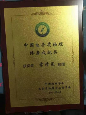 据悉,“中国电介质物理终身成就奖”奖项是中国物理学会电介质物理专业委员会于2014年设立的奖项,专门用于表彰为我国电介质物理理论和应用发展做出了卓越贡献的科学家,本年度全国仅2人获此殊荣。此奖项是雷清泉院士继获得全国模范教师、黑龙江省特等劳动模范、60位新中国成立以来“感动龙江英才”等荣誉之后,再次获得殊荣。