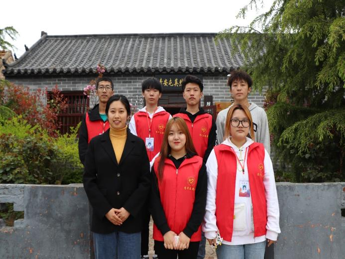 荣成学院学生组成的红色宣讲团成员与纪念馆工作人员合影