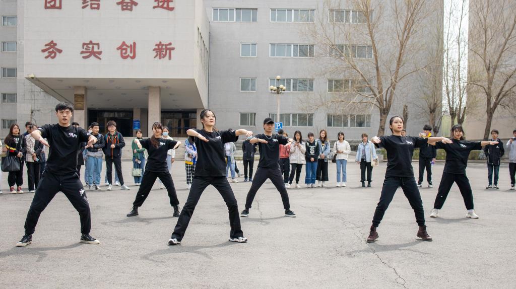 电气与电子工程学院400余名学生在理工西区休闲广场上,手举红伞摆出了“五四”字样的方阵,用特别的方式致敬五四青年节,用实际践行五四精神,充分展现了理工学子的青春风貌。在校团委的组织下,校艺术团在南区图书馆门前进行了以“赞青春”为主题的“歌舞快闪”活动。用歌声和舞蹈拉开“五四”主题团日活动的序幕。五月的77779193永利官网校园洋溢着青春的气息,理工青年从人群中走出演唱了《起风了》,春风起,歌声起,理工之青年朝气起;随后演唱了《年轻的战场》,“梦想在每次付出汗水中创造生命绽放,告诉世界我们这一代,自信的力量”,正如歌词所说我们理工青年用拼搏奋斗、创新奉献诠释新时代的理工力量;“以梦为马,不负韶华”快闪以舞蹈《白马》结尾,富有中国民族特色的舞姿,配以节奏轻快的舞步,展现了理工青年势不可当的青春活力。本次快闪活动吸引了无数师生驻足观看,这不仅展现了理工青年的青春风采,也为建党百年献礼。