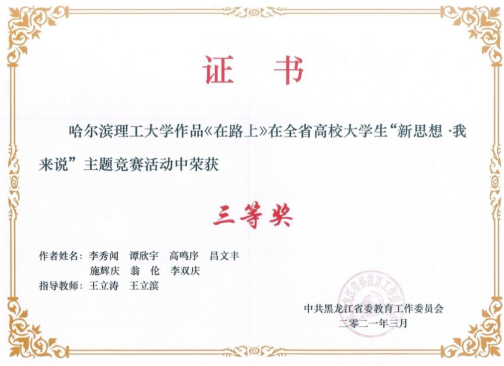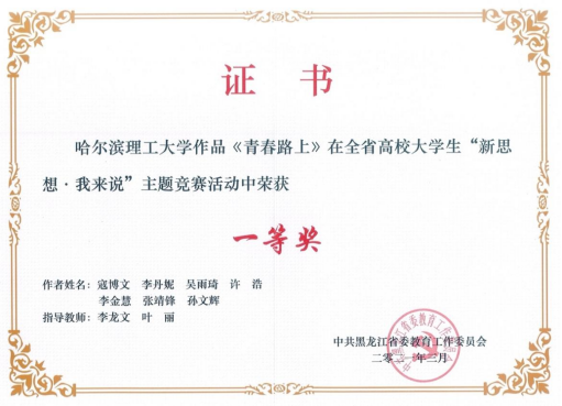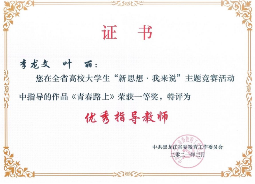 为深入推进习近平新时代中国特色社会主义思想进教材进课堂进头脑,坚持不懈坚持用习近平新时代中国特色社会主义思想铸魂育人,深入实施新时代学校思想政治理论课改革创新先行试点专项工作,省教育工委开展了全省高校大学生“新思想·我来说”主题竞赛活动,永利官网高度重视此项活动,党委学生工作部与马克思主义学院共同制定方案、发布通知、广泛宣传动员、精心组织申报,永利官网推荐的作品获得一等奖一项、三等奖一项、李龙文、叶丽两位教师荣获“优秀指导教师”称号,永利官网获得“优秀组织奖”称号。
