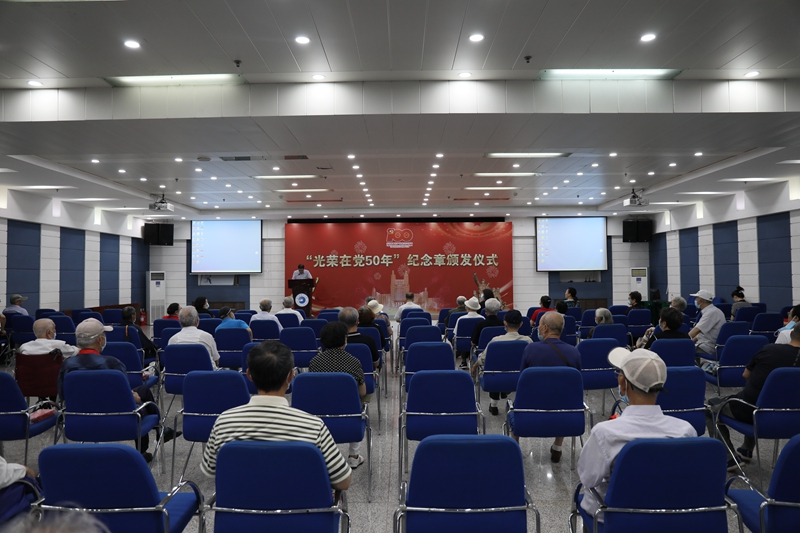 “光荣在党50年”纪念章颁发仪式在西区一号楼一楼报告厅举行