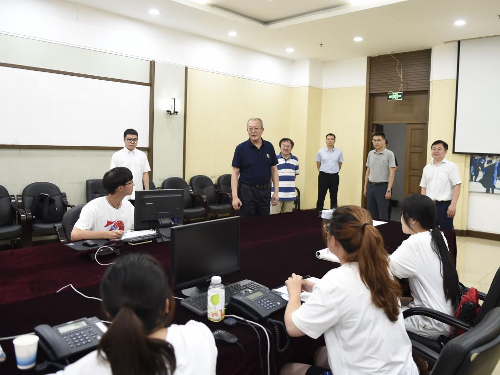 7月16日下午,校党委书记、校长赵琳在学校办公室、工会等部门人员陪同下深入招生录取现场,检查指导2021年招生录取工作并对参与招生录取的工作人员表示慰问。