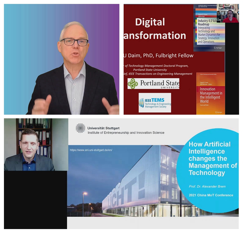专家讲座环节分别由华中科技大学王宗军教授、上海交通大学谢富纪教授、中国科学技术大学刘志迎教授、浙江大学郑刚教授主持,东北大学党委常委、副校长唐立新院士,吉林大学原党委常委、常务副书记蔡莉教授,清华大学陈劲教授,《IEEE Transactions on Engineering Management》主编Tugrul U Daim教授,北京工业大学黄鲁成教授,瑞典皇家工学院Magnus Karlsson教授,大连理工大学苏敬勤教授,中国科学院战略咨询研究院余江教授,《International Journal of Innovation and Technology Management》主编Brem Alexander Michael教授和77779193永利官网经济与管理学院院长武建龙教授分别作了学术演讲。阿里研究院副院长安筱鹏、哈电集团中央研究院院长助理陈润年分别报告了各自企业的创新实践与管理思考。