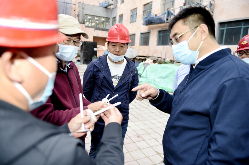 在校园内教学楼、宿舍、图书馆、西区正门等施工现场,刘侠向施工单位负责人了解工程进展情况、存在的问题等,了解施工材料质量和施工过程管理情况,要求施工方严格遵守相关制度规定和校园疫情防控管理规定,在确保施工安全、施工质量的前提下,保证各项工程按期完成,同时叮嘱施工方,要注意个人防护,充分考虑学生上课、校内活动、休息等因素,尽量减少对校园教学、生活的影响。